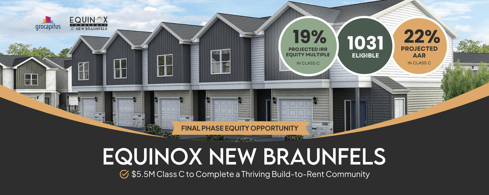 With all civil and horizontal work now complete for both phases, Equinox New Braunfels is moving rapidly into the final stage of development. The site is fully prepped, allowing vertical construction on the final 72 units to begin immediately after this raise — significantly reducing timeline and risk.